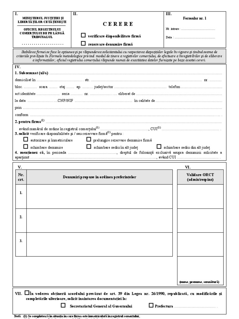 Cerere verificare disponibilitate si/sau rezervare emblema persoane juridice cerere verificare disponibilitate firma. C e r e r e verificare disponibilitate firmă rezervare denumire firmă iii.