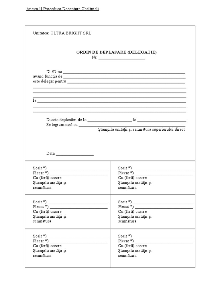 Ordin de deplasare ( delegatie) nr. Ordin de deplasare (delegałie) nr. 9083 o ordin de deplasare, 100 fileo format: