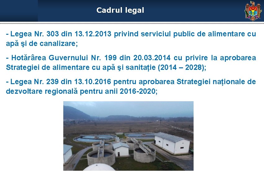 vizitati articolul complet aici : https://op.europa.eu/webpub/eca/special-reports/drinking-water-12-2017/ro/ Serviciile publice de alimentare cu apa. Banii sunt necesari pentru construirea rețelelor de alimentare cu apă în 12 localităţi din raionul râşcani, nouă din raionul cahul şi totodată, vor fi construite o staţie de epurare în municipiul soroca, reţeaua de canalizare din municipiul comrat şi va fi asigurat accesul a 100 de instituții de învăţământ. Legea cu privire la apa potabila 3.