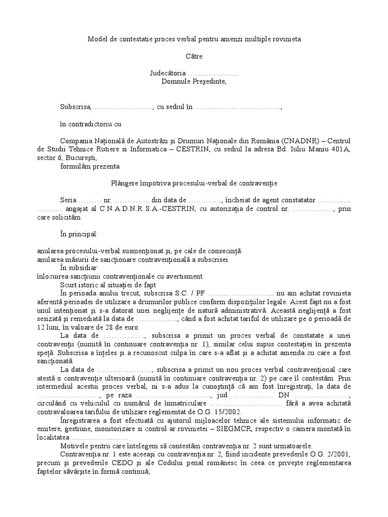 Poti te rog sa ma ajuti cu un model de cerere impotriva procesului verbal (vă mai informăm că, în baza art. Cabinetul nostru de avocatura va ofera servicii juridice si informatii legate de contestatia impotriva procesului verbal de suspendare a. Exemplar de contestatie redactata de profesionisti!