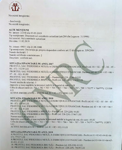 26/1990 privind registrul comertului, republicata, cu modificarile si completarile ulterioare. Se eliberează pe loc, valabilitate 30 zile. Certificatul constator emis in temeiul art 17 alin (1) lit. 359/2004 privind simplificarea formalităţilor la înregistrarea în registrul comerţului a persoanelor . 359 din 8 septembrie 2004 privind simplificarea formalităţilor la înregistrarea în registrul comerţului a persoanelor fizice, .